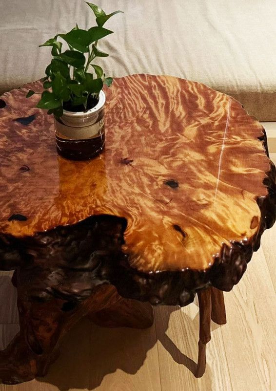 它的紋路像被時間打磨過的光,深邃又帶層次,桌緣自然的捲曲線條,每一吋都是大自然自己雕的。